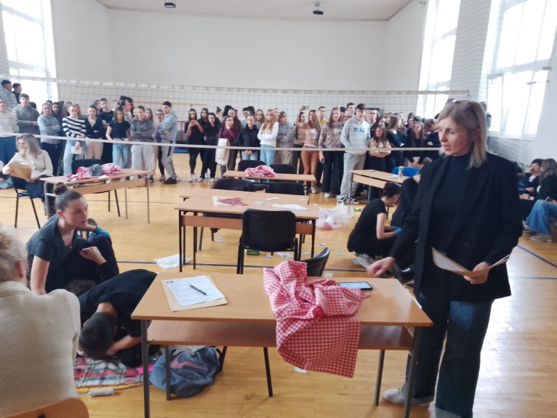 На школском такмичењу одржаном 3. 4. 2026. године било је два полигона КПР и „Тесна кожа“.