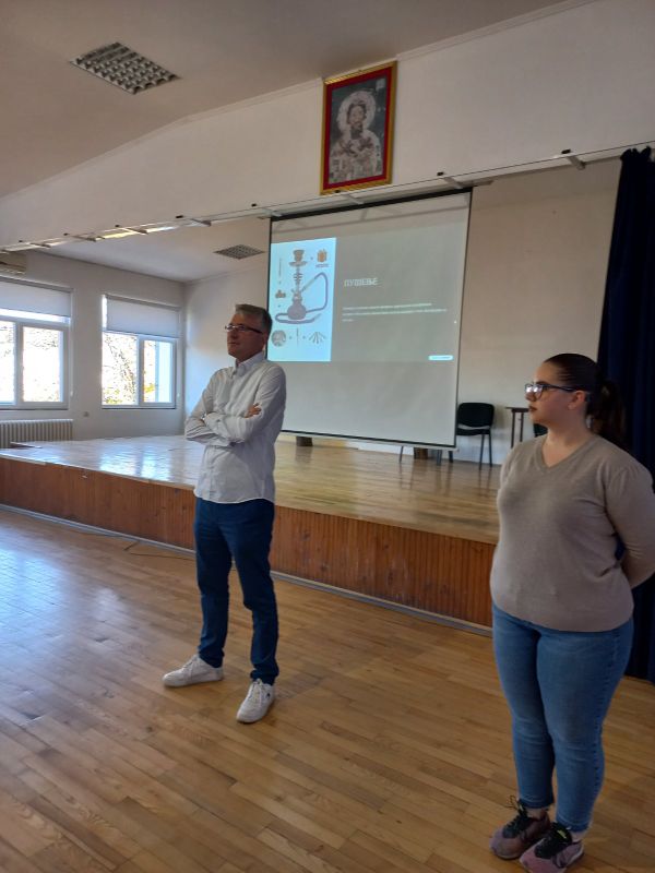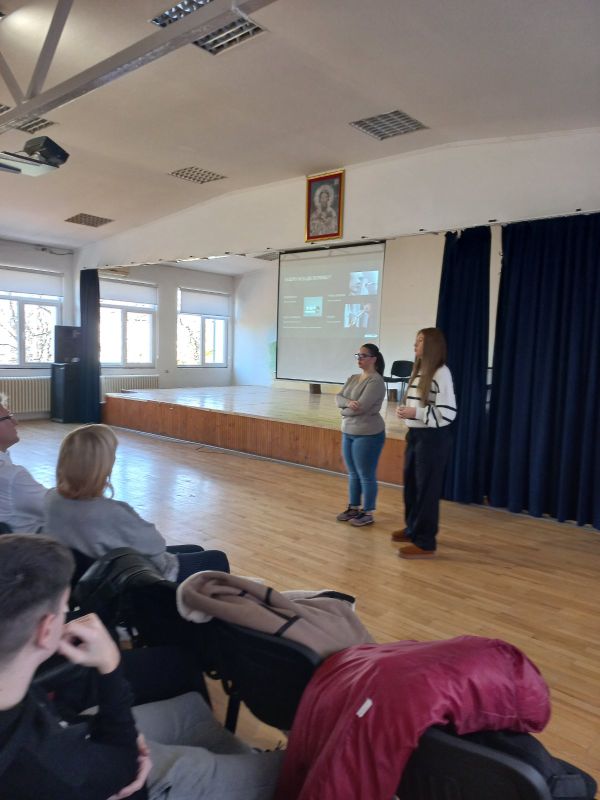 У сарадњи са ИЗЈЗ и Тимом за сарадњу са локалном самоуправом 10. 12. 2025. године настављене су превентивне активности везане за Превенцију болести зависности. Нина Марковић и Анастасија Миленковић, ученице 4/2 одељења, одржале су предавање на тему Превенција пушења у Првој техничкој школи ученицима првог разреда са циљем едукација едукатора.